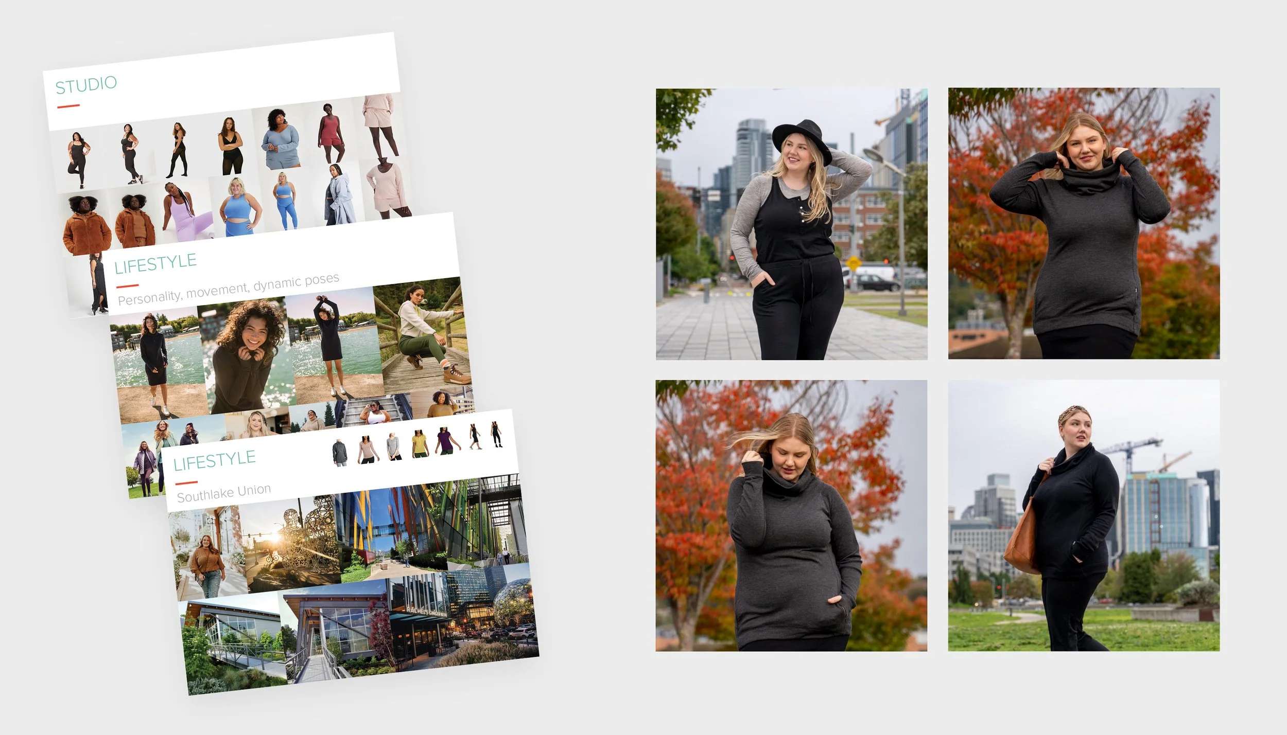 The Woolly team wanted to extend their sizing to include XL in select women’s styles. We styled a mid/plus-sized model to show variation of body types on product pages.